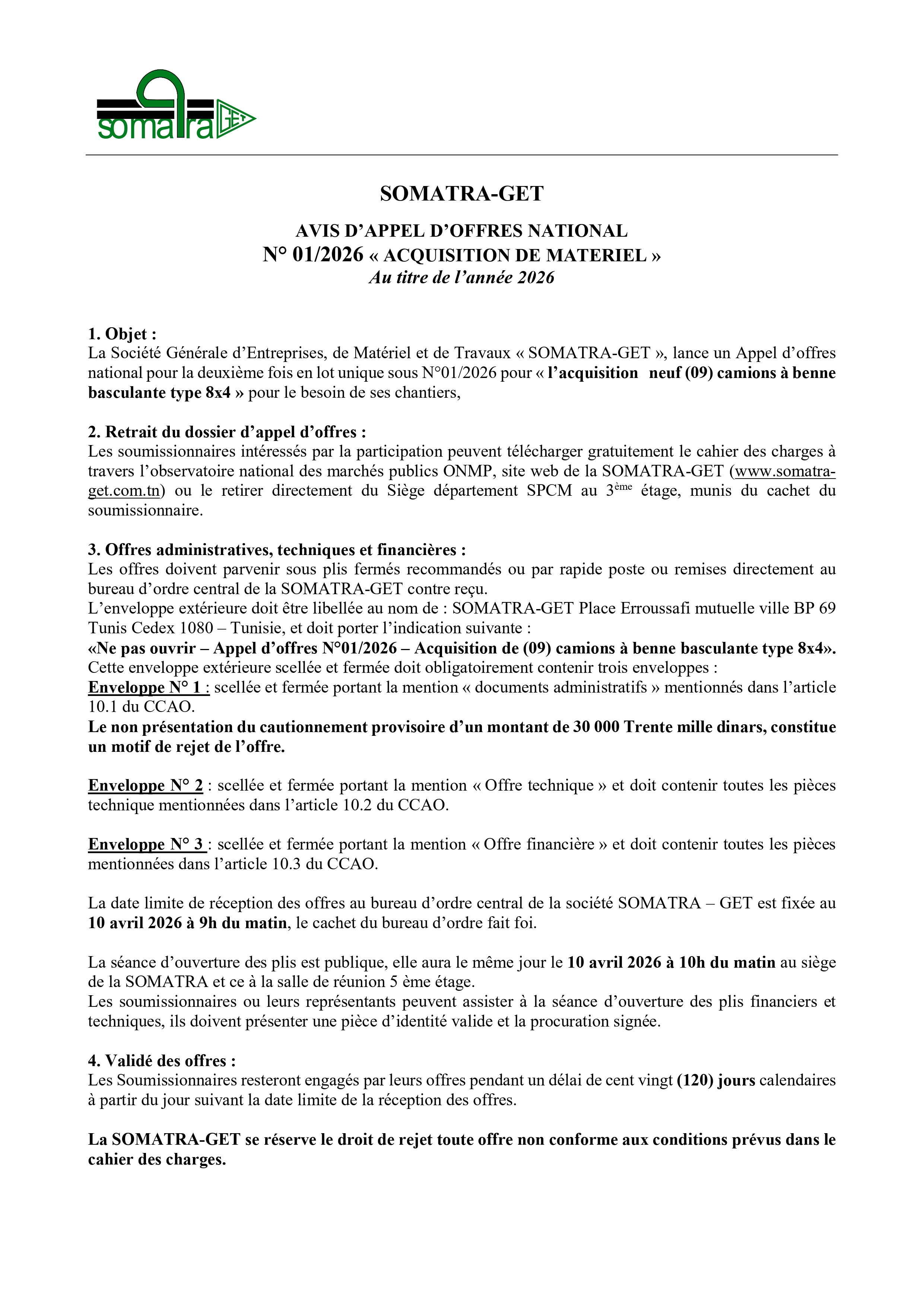 AVIS D’APPEL D’OFFRES NATIONAL N° 01/2026
